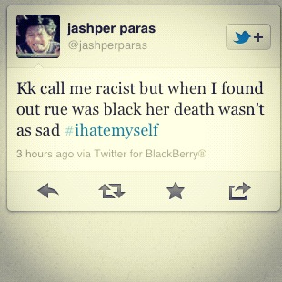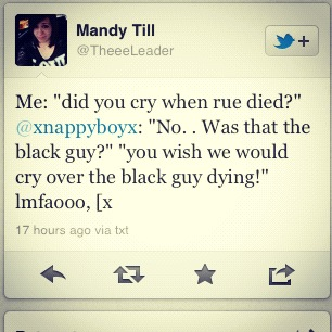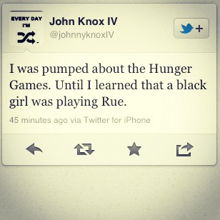 It seems a little silly, in a day and age like this, that a book that takes place in a bleek future and one that pits children against children for sport, would concentrate so much on the pigmentation of an actors’ skintone. That someone could fix their lips to say “WHAT? The guy is Black? He wasn’t Black in the book, and him being Black makes me hate this movie!” Wow, who knew the casting of Lenny Kravtiz and Amandla Stenberg by the filmmakers to play pivotal roles would be called into question. People tweeted their opinions about the casting of the actors, with reasons waffling between a dislike of the change as a fan of the book, and others hating Black actors in the role, because, well they’re Black.The sentiments that were expressed made a true fan launch a website to collect some of the ignorant tweets from fans.